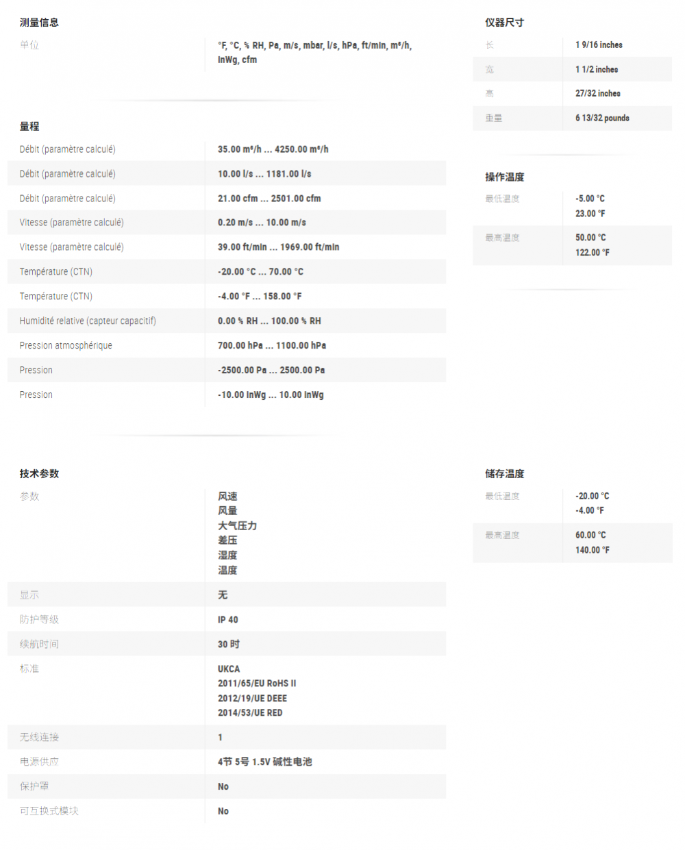 详细信息IP属地 广东 产品信息: 可折叠安装框架技术&风罩 量程:35~4,250 m³/h 快速简单的更换风罩 标配移动应用软件SmartKap,可读取和分析记录数据 紧凑便携带设备工具箱 标配风罩含整流器,可用于测量各种类型出风口 随货提供: 1 底座包含测量矩阵和温湿度探头 1 可拆卸式带蓝牙功能的测量主机 4 5号1.5V碱性电池 1 610*610mm 尺寸的含整流风罩和可折叠安装框架 4 固定框架的碳纤维杆 2 0.8米长的硅胶软管 1 框架连接件备件 1 法国工厂校准报告 1 便携式工具箱 |