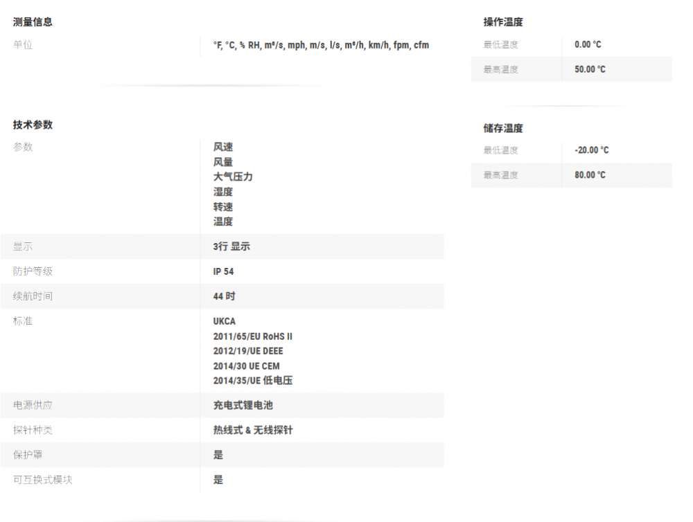 测量风速,风量,温湿度,温度,转速,大气压力