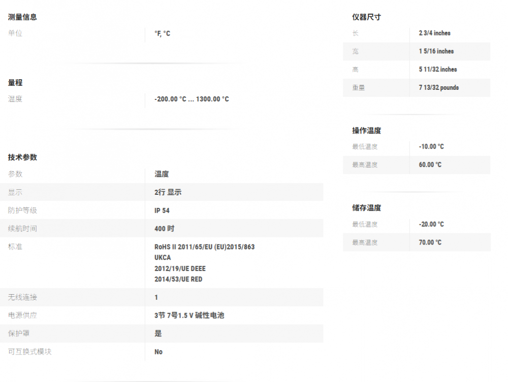 详细信息IP属地 广东 产品信息: 双通道K型热电偶,量程-200~+1,300 °C 标配2只温度探头,量程-40~+260°C 背光液晶显示屏 背部吸磁可轻松固定 随货提供便携包 随货提供: 2 个 K 型热电偶探头,探头线缆长度1米 1 份出厂合格证明 1 份快速入门指南 3 节7号 1.5V碱性电池 1 个便携包 |