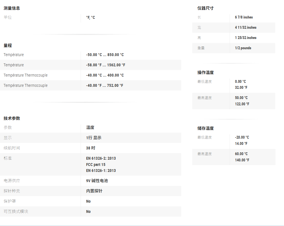 随货提供: 1 便携箱 1 操作手册 1 K型热电偶温度探针 |