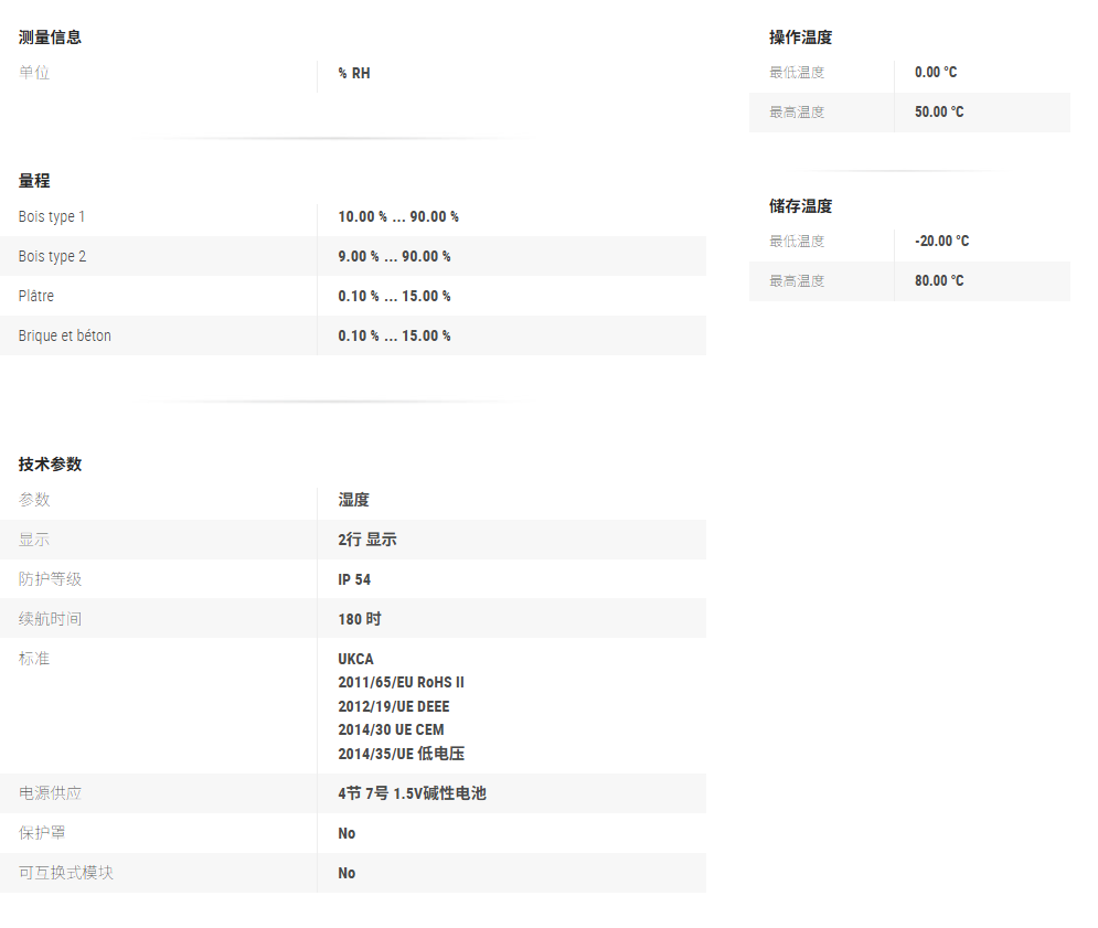 可测量多种建材:多种木材种类,石膏,砖块,混凝土