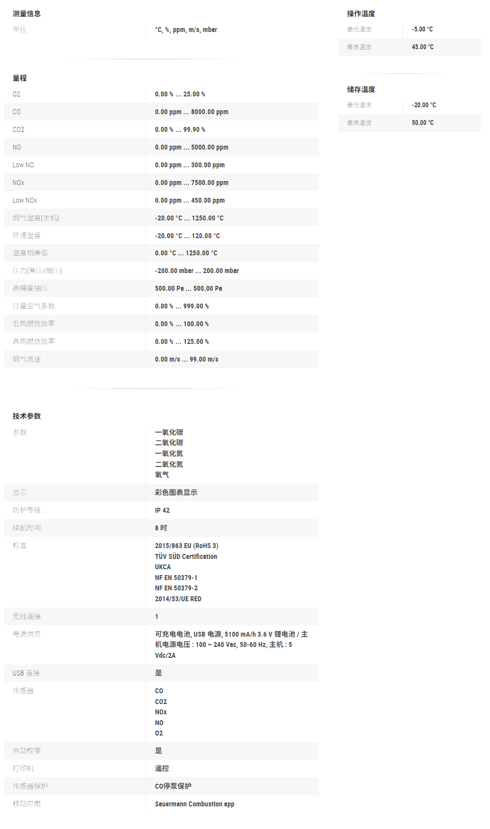 配置 2 或 3 组气体传感器,O2,CO 和 Low NO/Low NOx