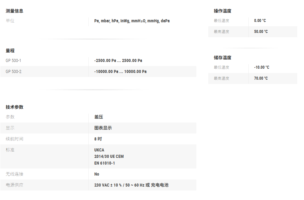 三段自动切换量程:±100 Pa / ±1,000 Pa / ±2,500 Pa ( 自动切换 )