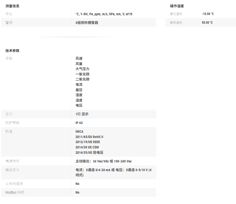 可连接一组智能型探头(温湿度,热线风速,叶轮风速,温度,CO2,CO)