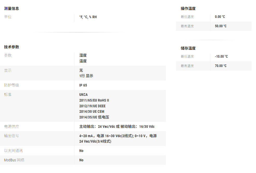 风管型 & 分体型:0~100 %RH,-40~+80°C