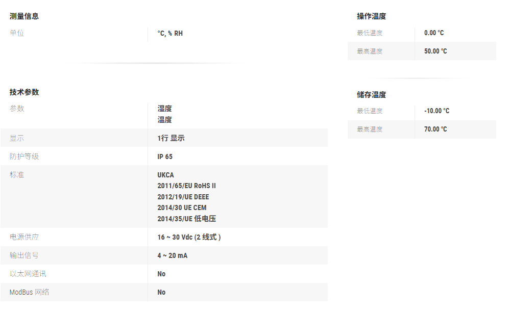0 ~ 100 %RH 和 -20 ~ +80 °C