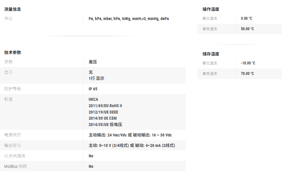 微差压: ±10 ~ ±100 Pa